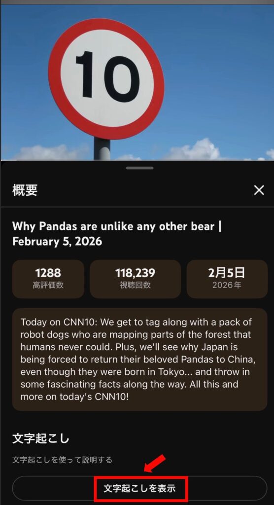 TED-Edの時のように、スクリプト(文字起こし)を開きます。