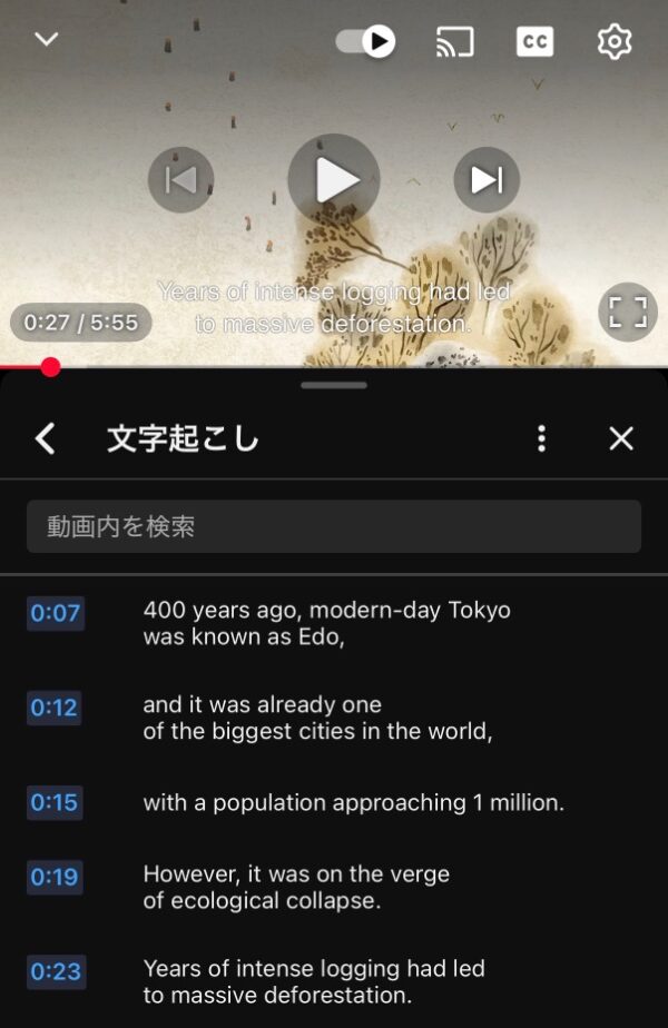 今度は文字起こし(スクリプト)を表示させてみましょう。